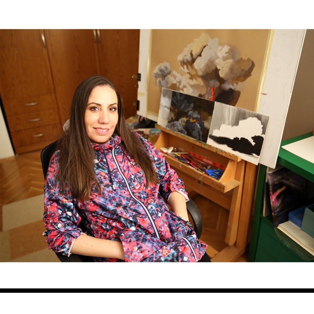 The basis of her recent works is based on the relationship between the biological, primitive nature and the person who established a second nature in it. The artist examines moving and living elements of nature, such as wind, sky, and water in stagnation and inaction. These conflicts of two natures, which are sometimes against to each other and sometimes permeable, have been the topic of the artist’s paintings, videos and installation of 3D sculptures. The work titled of the Black Series refers to this contrast.
